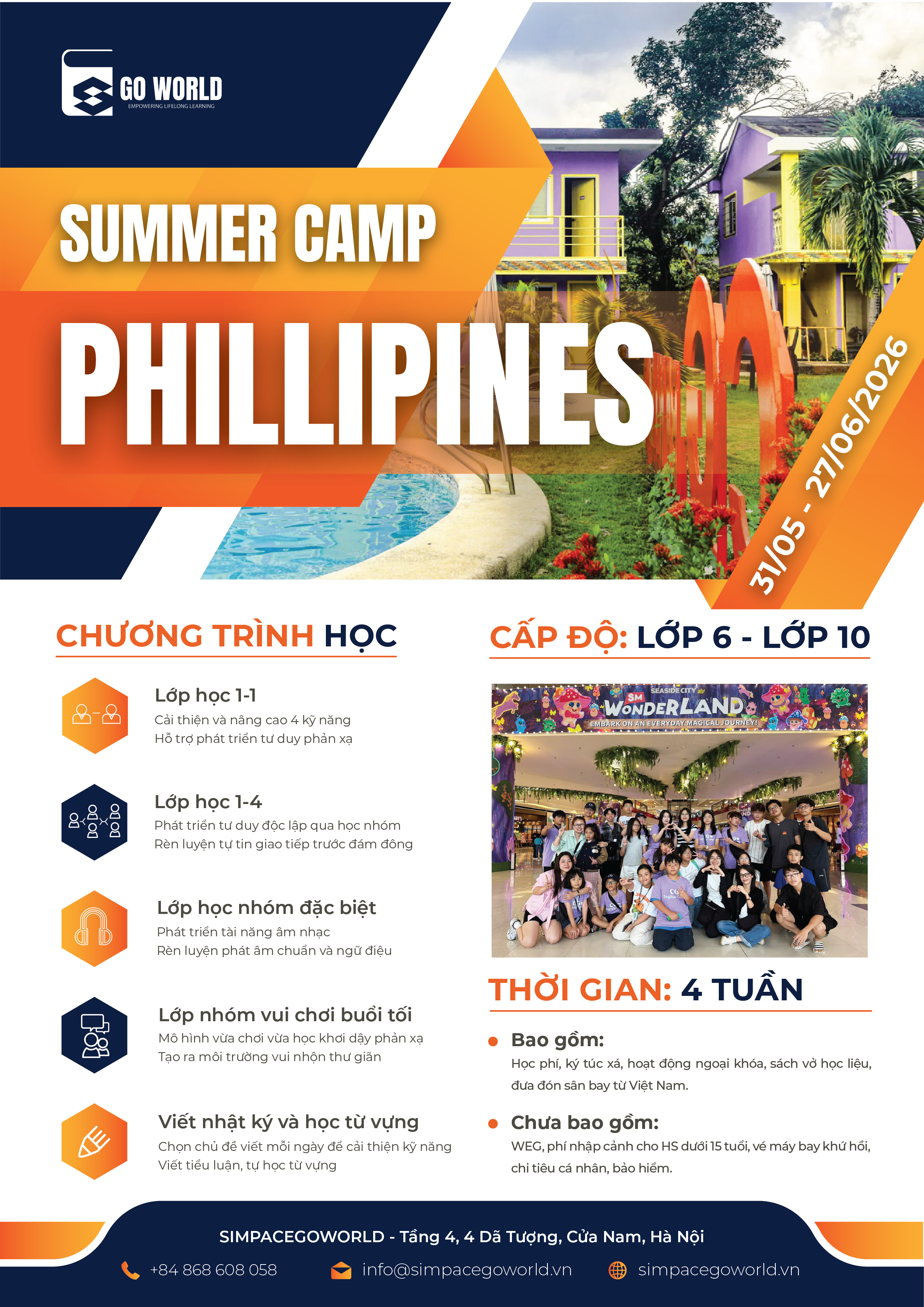 📩 Inbox SIMPace Go World để nhận tư vấn chi tiết về Trại hè ESL Philippines 2026.